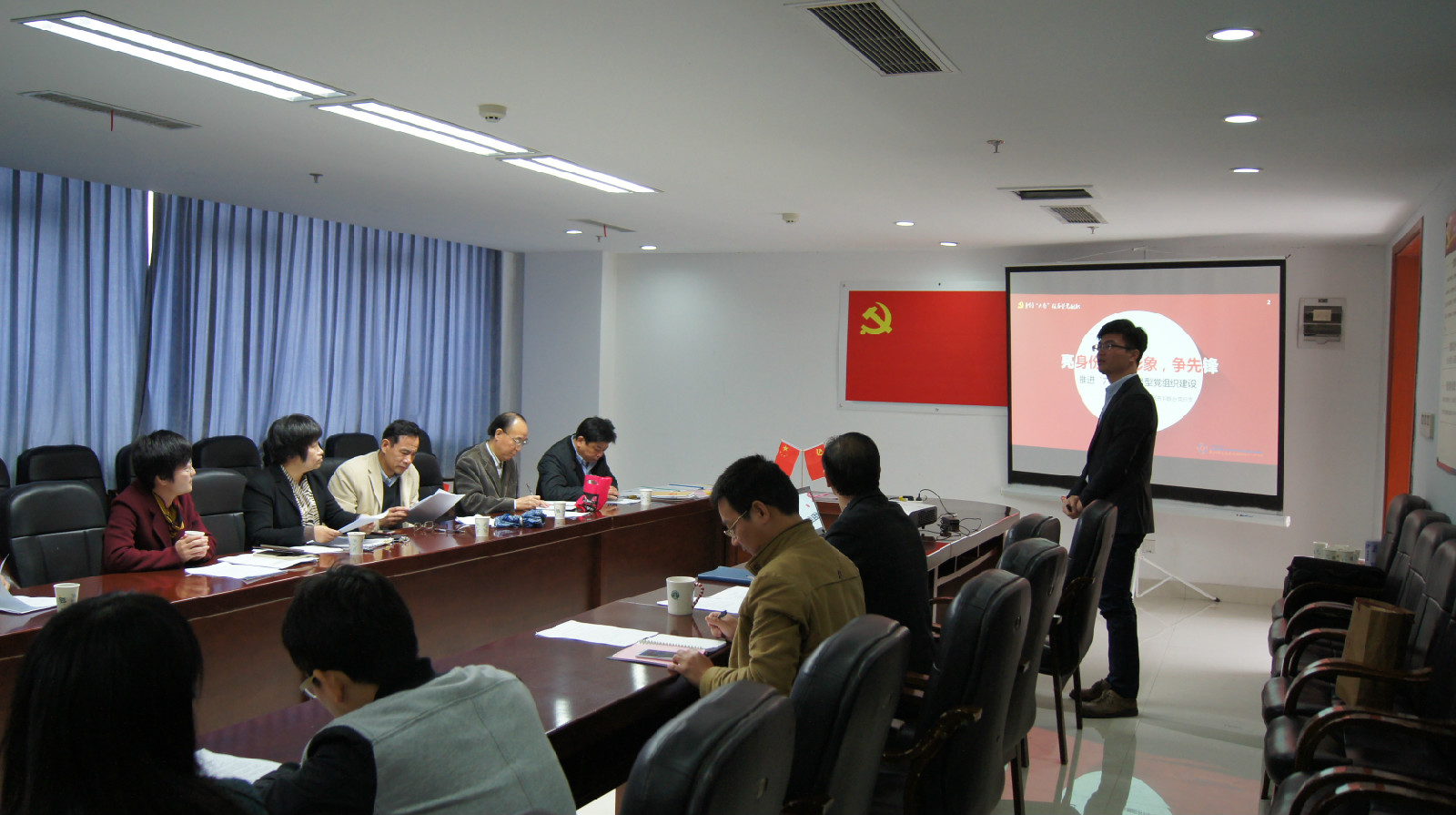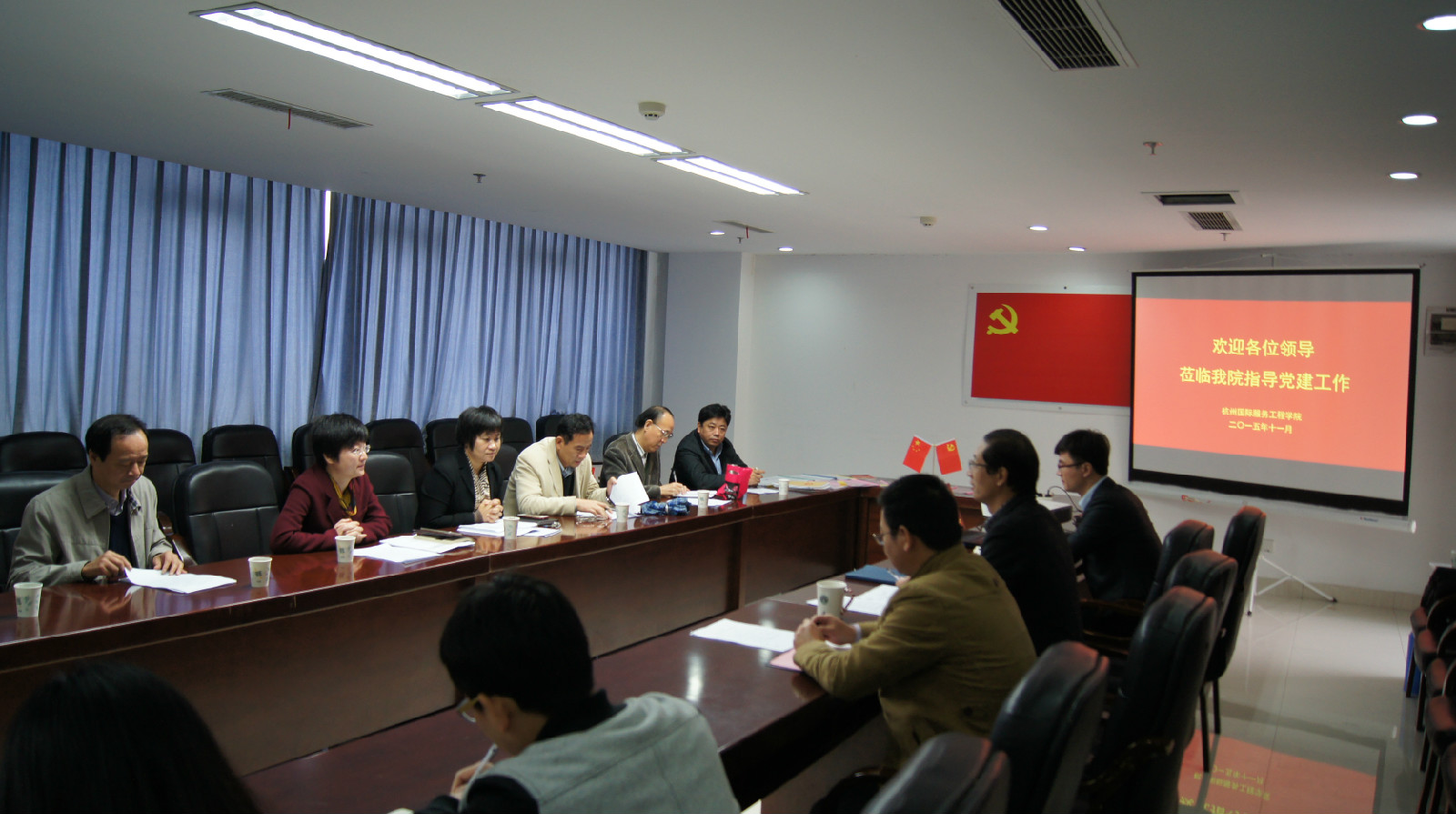 2015年11月19日,组织部一行12人来到追剧狂人 党员之家,听取学院计算机系金融服务系联合党总支申报“六有”服务型党组织建设示范点创建的答辩。学院党委书记陈永强、党委副书记杨学勇和组织员赵亚英出席答辩会,系总支书记张敬礼进行答辩。