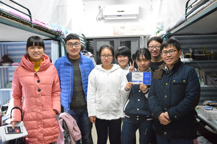 12月13日下午,辅导员杨鹏飞老师带领团学社和114党员服务中心成员一起走进学生寝室,为荣获学院“文明寝室”和“特色寝室”称号的寝室授牌,并颁发奖品。