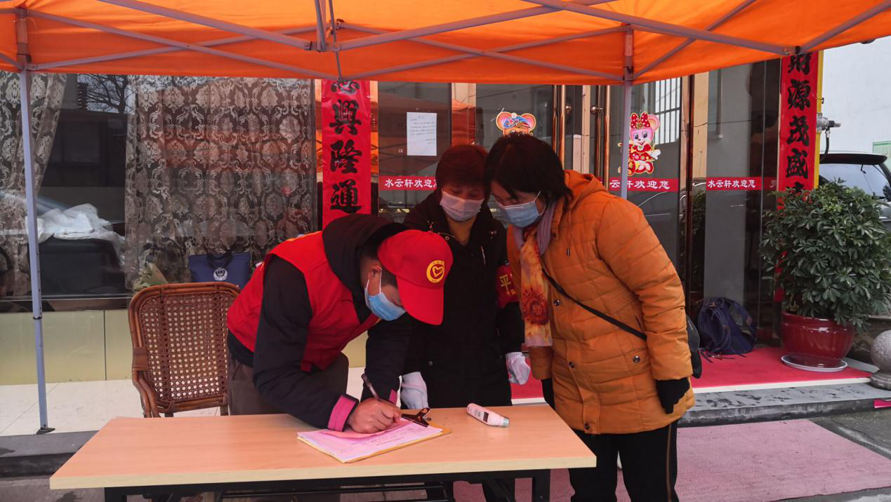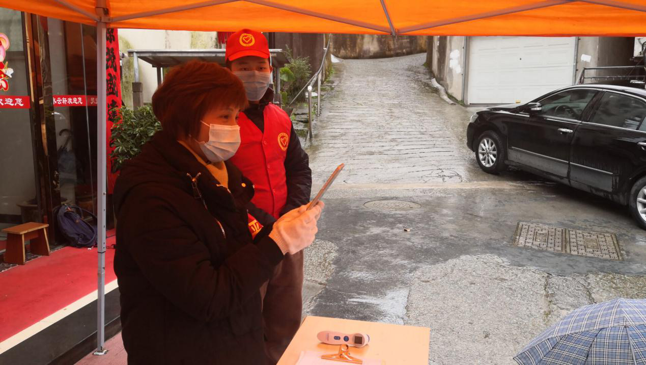 “现在的话主要是一个社区工作人员和两个志愿者在社区指定小区的一个出入口卡点,严格按照小区里每户居民两天只能一人出门采购的要求进行登记和排查,并且进行体温测量,有异常和紧急情况及时上报。”