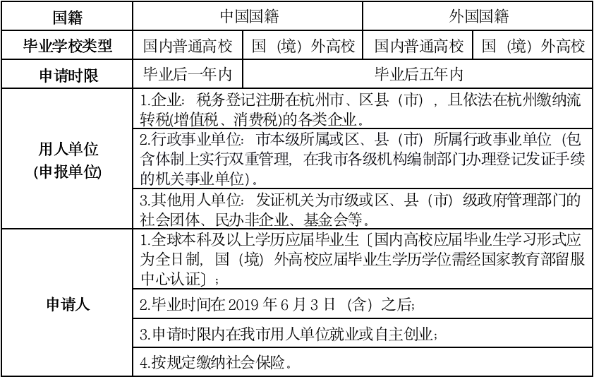 2016 年 2 月 1 日后,毕业年度的高校毕业生毕业后当年被注册地在市区的 300 人以下企业(以下简称小微企业)新招用,或 2018 年 10 月 1 日后,毕业两年内的高校毕业生被注册地在市区的1000 人以下的企业(简称中小微企业)新招用,并由其办理就业登记、依法连续缴纳社会保险费满 12 个月,且工资收入低于上年度市区全社会在岗职工平均工资。