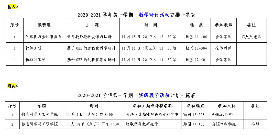 附件:信息科学与工程学院2020-2021-1学期教学公开课、教研活动等安排表