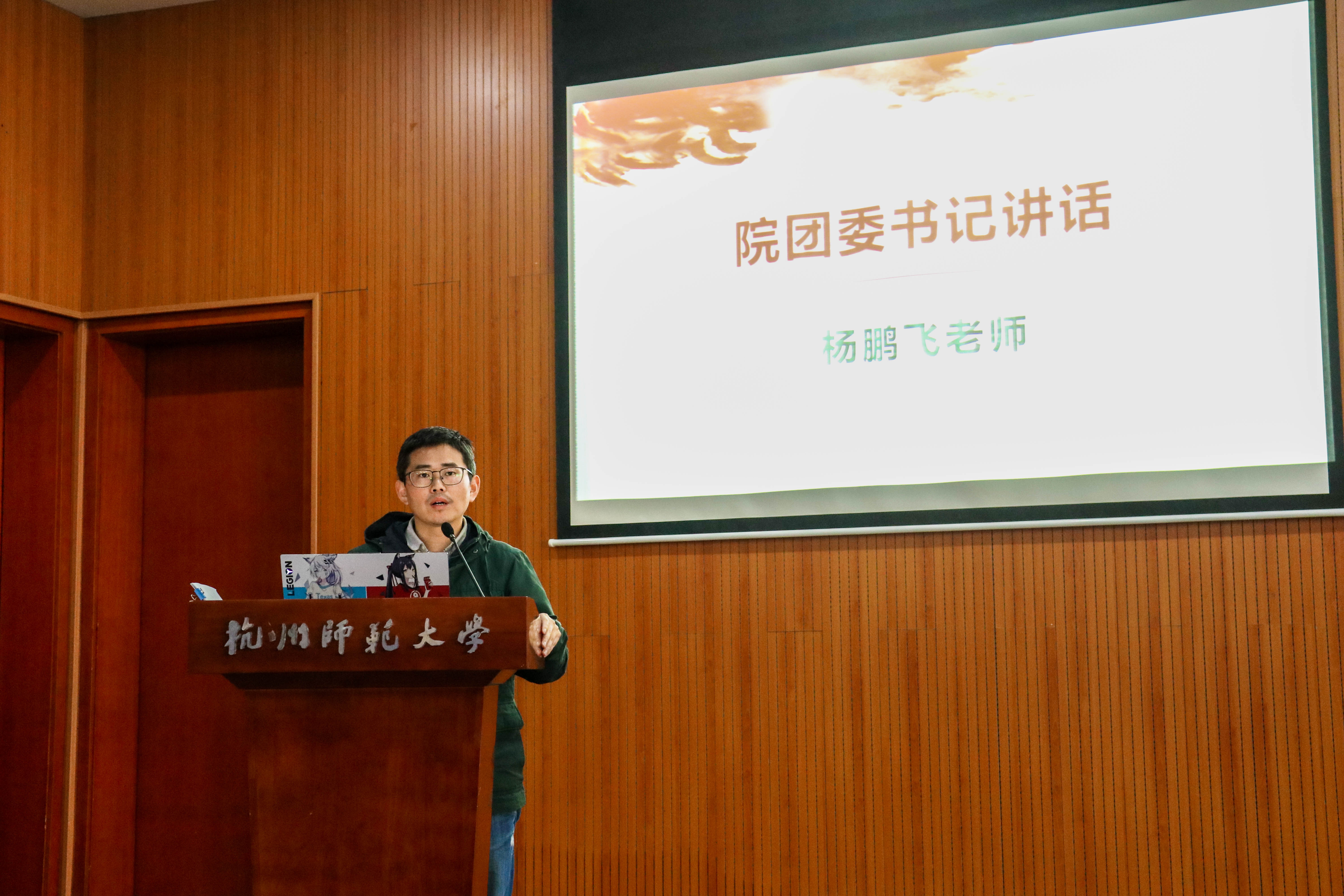 杨老师从“团队的力量”、“为什么人多力量不大”、“如何理解团队意识”、“怎样才算具备团队意识”四个方面来讲述“团队意识”。“团队意识”,其由多种情感聚集在一起而产生的一种精神,团结就是相互配合,真正的团结就是无条件地配合。杨老师在讲座中指出,现今是一个追求个人价值实现和团队绩效双赢的时代,但是社会太强调英雄,总强调“以一当十”,却忘了大成功得依靠团队,达到“以十当一”。他希望,团学队伍能够在尊重个人的基础上,全体成员凝聚力量、达到个体利益于整体利益相统一的层次,从而保证组织高效运转。同时,团队互助的最好工具是沟通,良好的沟通能力是团队合作的关键,没有沟通就没有团队。此外,杨老师希望大家在协作中应尽量避免出现内耗现象,增强“补位”意识,成员之间积极沟通。他对团学的成员们提出了七点要求,希望大家在学生工作和学习中找到最佳的平衡点,牢记并履行 “内聚人心,外塑形象,内外兼修”的口号。