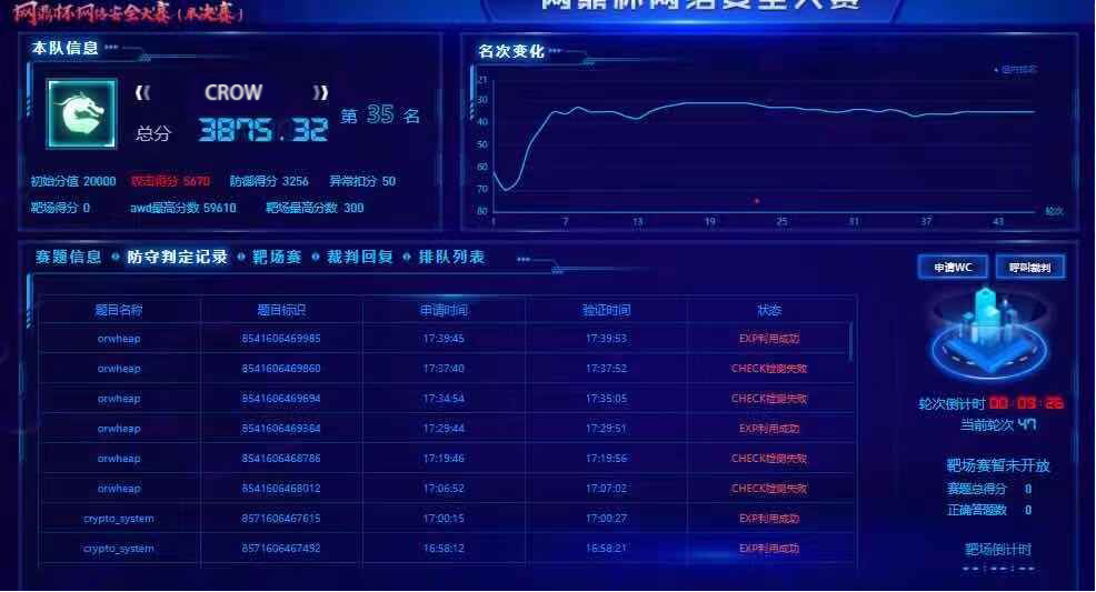 11月29日,由国家网络与信息安全信息通报中心、深圳市人民政府、广东省公安厅支持的第二届“网鼎杯”网络安全大赛在深圳国际会展中心圆满收官。作为国家级高水平网络安全赛事,第二届“网鼎杯”集结全网安全力量,成功打造了网络安全“奥运会”,并开创全球最大规模网安竞赛现场。在追剧狂人 刘雪娇老师指导下,追剧狂人 学生龚新立、佘羽铖、章力博、陈俊儒四名同学组成的“CROW”战队参加了这次线下半决赛,并取得优异成绩。
