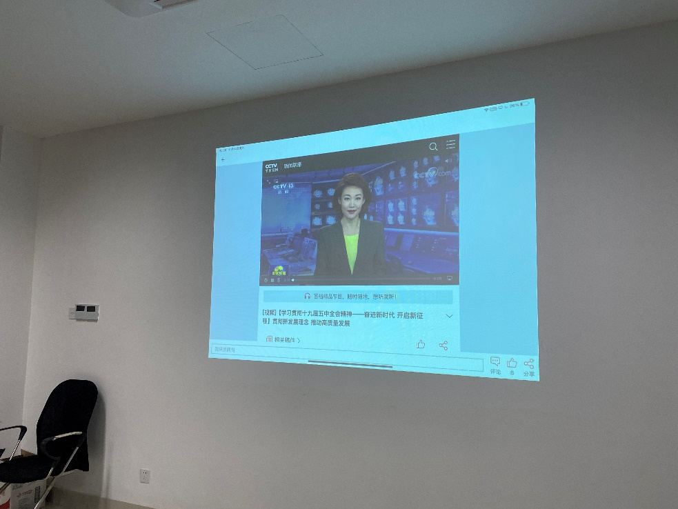 分享各位党员的心得之后,大家一起观看了十四五规划的相关视频,了解新发展理念,绘宏伟蓝图,谱发展新篇。