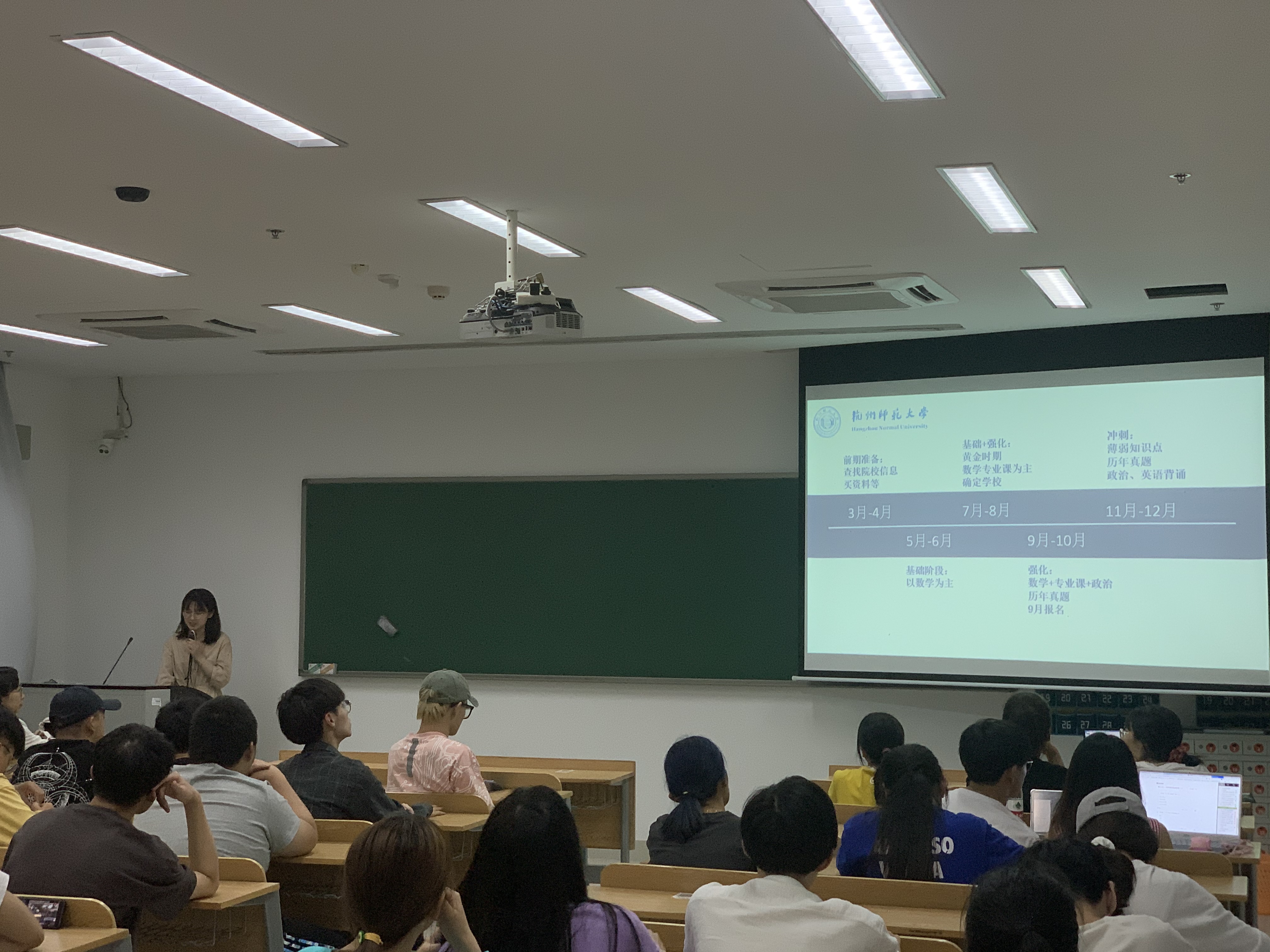 压轴上场的是以今年电子信息工程专业排名第四考取杭州电子科技大学的郑骁蓉学姐,她通过展示自己在考研阶段中不同科目不同阶段的各种资料,详细地讲述了自己在考研过程中的各种准备,希望学弟学妹早日制订目标,奋力前行。