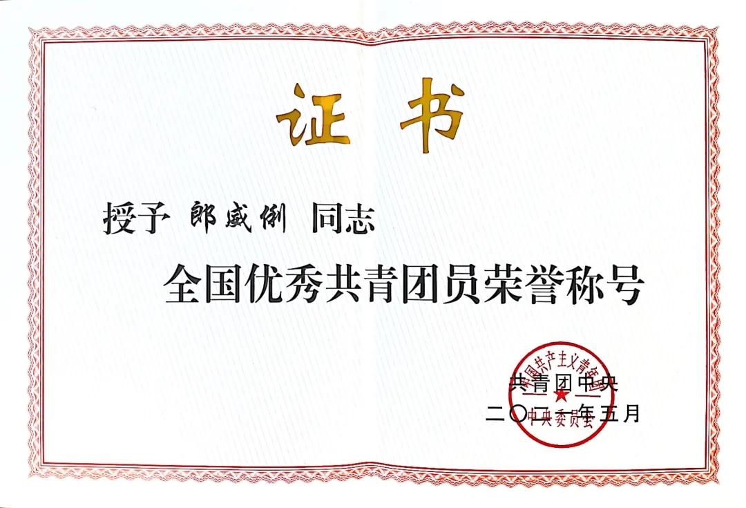郎威俐同学荣获“全国优秀共青团员”荣誉称号!
