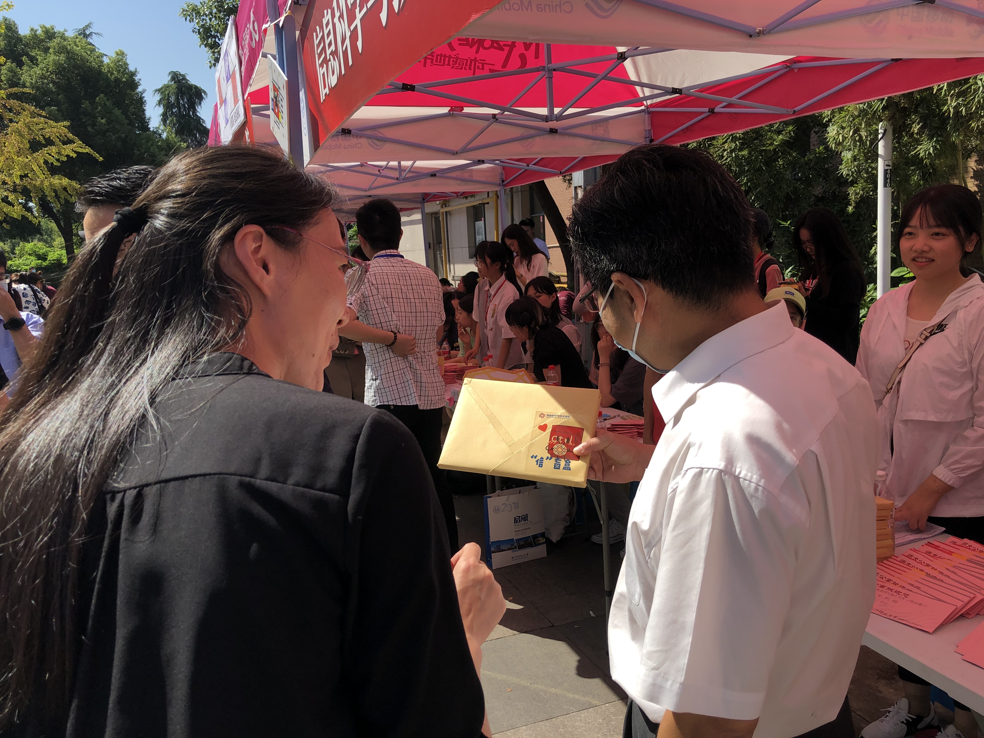 9月22-23日,追剧狂人 2021级新生报到。为更好地传递爱心和迎接新生,营造和谐同心的校园读书氛围,学院团委组织开展“信”盲盒活动,每个新生在报到点可以随机抽取一份盲盒,里面是学院老师和同学捐赠的书籍,其中涵盖专业教材、等级考试资料、文学小说、党史读物等,同时在书的扉页上都留有老师和学长学姐对2021级新生的祝福和寄语。