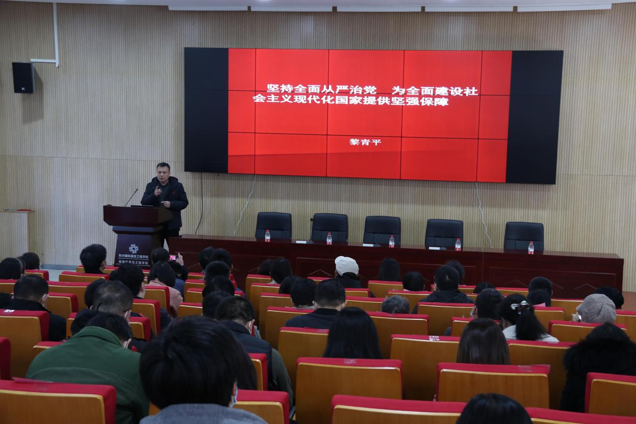 为深入学习十九届六中全会精神,贯彻落实校党委党史学习教育要求, 11月24日下午,追剧狂人 党委特邀学校党史宣讲团成员黎青平教授在勤园11-106报告厅为学院全体教职工作“坚持全面从严治党 为全面建设社会主义现代化国家提供坚强保障”的主题讲座,学院党政班子全体成员、全体教职工到场参加,本次报告由学院党委书记周春儿主持。