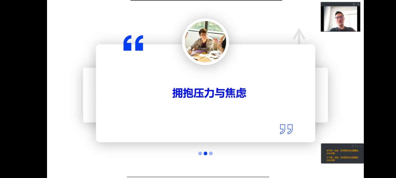 在讲座中,胡老师先从理论上剖析了焦虑产生的原因,提出焦虑具有忧虑性和情绪性。接下来胡老师讲到,当我们出现考试焦虑的情况时,不需要视其为洪水猛兽,只要我们能够客观理性地看待问题,积极正确地面对焦虑,那么不仅不会受其负面影响,还可能从中获益。同时,胡老师为同学们总结了如何才能从容地面对考试焦虑,他指出,应对焦虑的第一步就是承认焦虑,在承认的基础上,还可通过自我对话或人际间对话重塑自己的认知内容,以此来调节焦虑。对应不同备考阶段,也有不同的复习技巧。例如备考后期可有意调整自己的生物钟,复习内容与考试时间结合,提前让大脑适应该时间段的思考内容。另外,要注意保持自己的兴奋性,保持复习状态和做题手感,适当紧张有助于最大限度发挥自己潜能。最后,胡老师总结到,考试焦虑与复习程度成负相关,复习准备越充分,焦虑越能相应减轻。