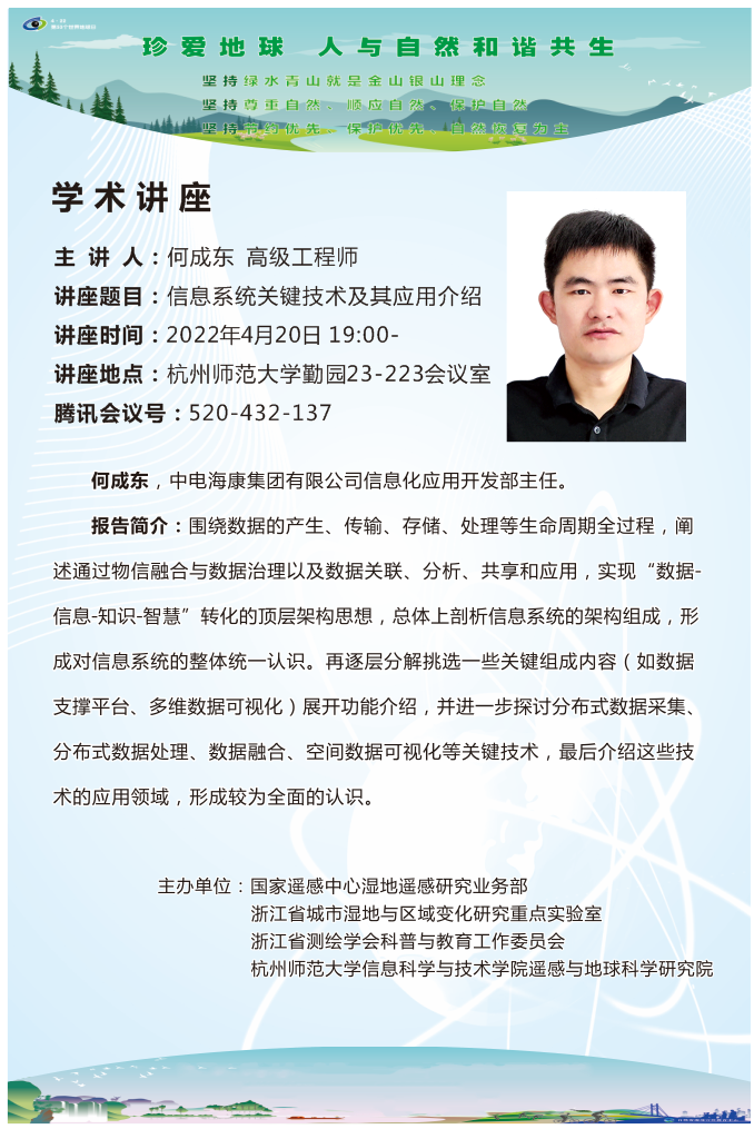 中电海康集团 何成东高级工程师  关于“信息系统关键技术及其应用介绍”线上专题讲座开讲,欢迎广大师生参加。观看方法:下载腾讯会议APP或登录网页-点击加入会议-填写会议号520-432-137点击加入会议即可,