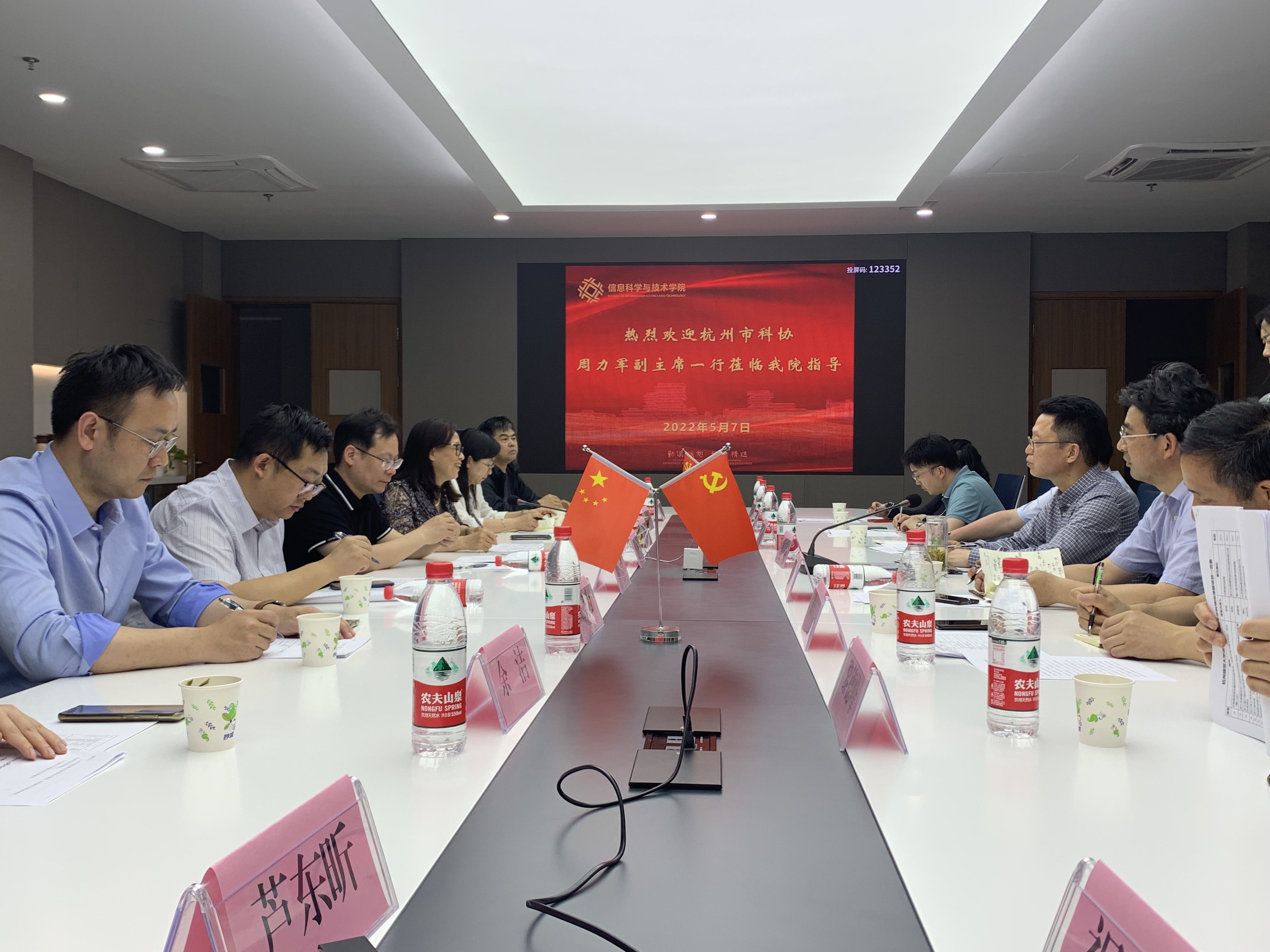 5月7日上午,杭州市科协党组成员、副主席周力军带领市科协科普部、中国低碳科技馆馆长陈仲达、余杭区科协主席黄庆芳及相关人员一行8人来追剧狂人 走访调研。追剧狂人 副校长胡华、科研处处长张杭君及学院党政班子成员陪同。