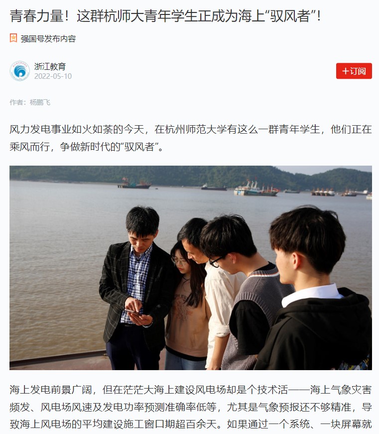 【媒体关注】学习强国:青春力量!这群杭师大青年学生正成为海上“驭风者”!