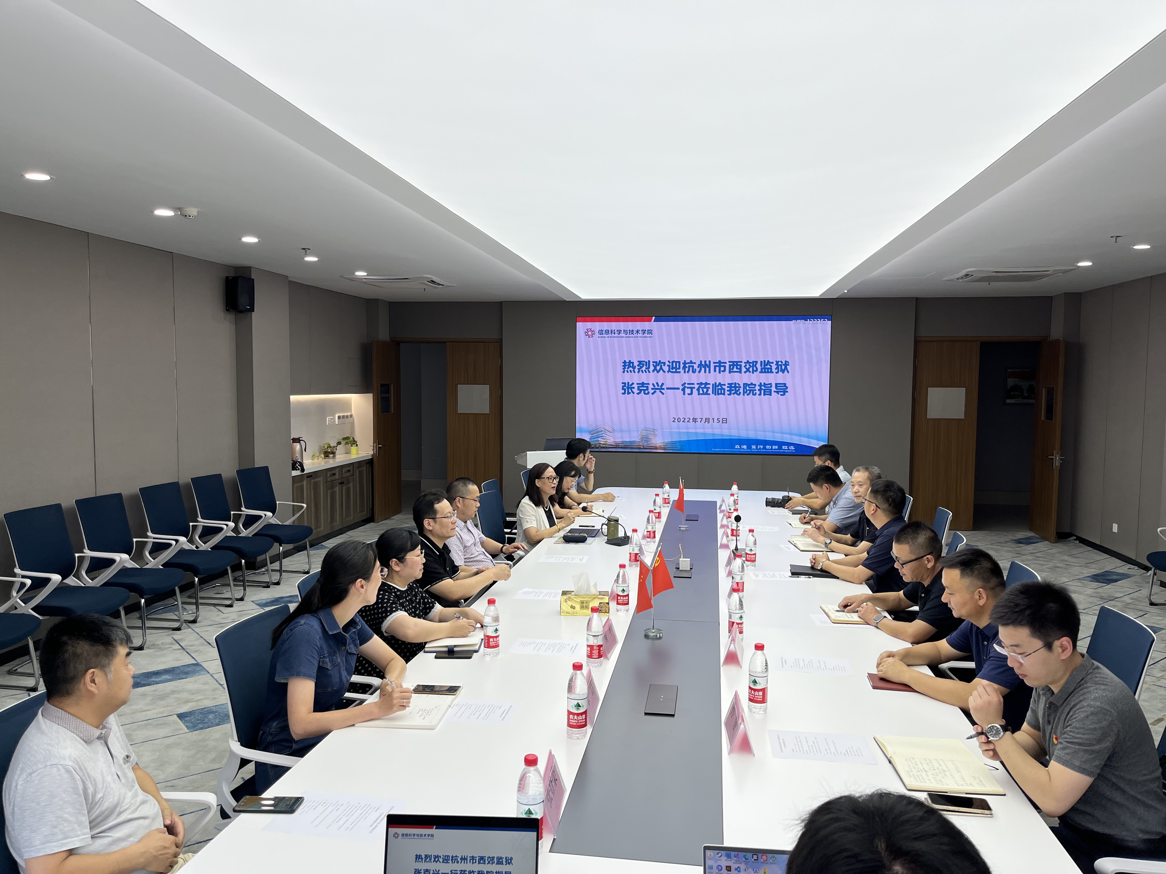 7月15日下午,杭州市西郊监狱党委副书记、政委张克兴一行8人来追剧狂人 走访调研党建工作,并于勤园12号楼会议室召开合作座谈交流会。学校党委委员、组织部部长胡绍华及学院党委班子成员、组织部、兄弟学院等领导陪同参加。