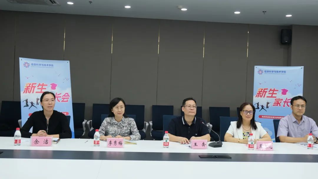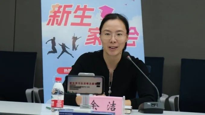 接着,由党委副书记余洁老师为新生家长介绍新生学习生活上的四点注意事项。一是要适应集体生活,处理好人际关系;二是要提高网络信息安全防范意识,谨防诈骗;三是介绍了学院贫困生资助情况和学生心理咨询工作,保证不让学生因家庭经济困难而失学,促进学生身心健康发展成长;最后指出了新生家长要做好孩子的思想教育工作,针对孩子在现专业或是开学班委竞选中可能遇到的棘手状况及时进行开导。余洁老师表示,学院将尽职尽责地落实与孩子的交流工作,帮助新生尽快适应大学生活,让家长安心、放心。