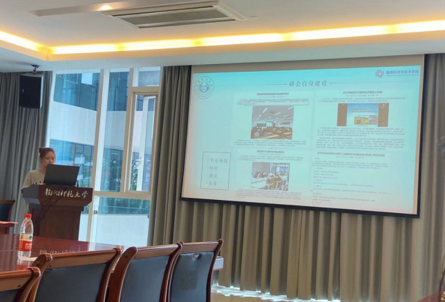 经过校研会审核材料,来自全校的十五个二级学院研究生会一一上台,进行汇报。研会执行主席庞婷婷从研会自身建设、特色工作、科研及获奖三方面进行了答辩汇报,展示了追剧狂人 研究生会的风采与特色。