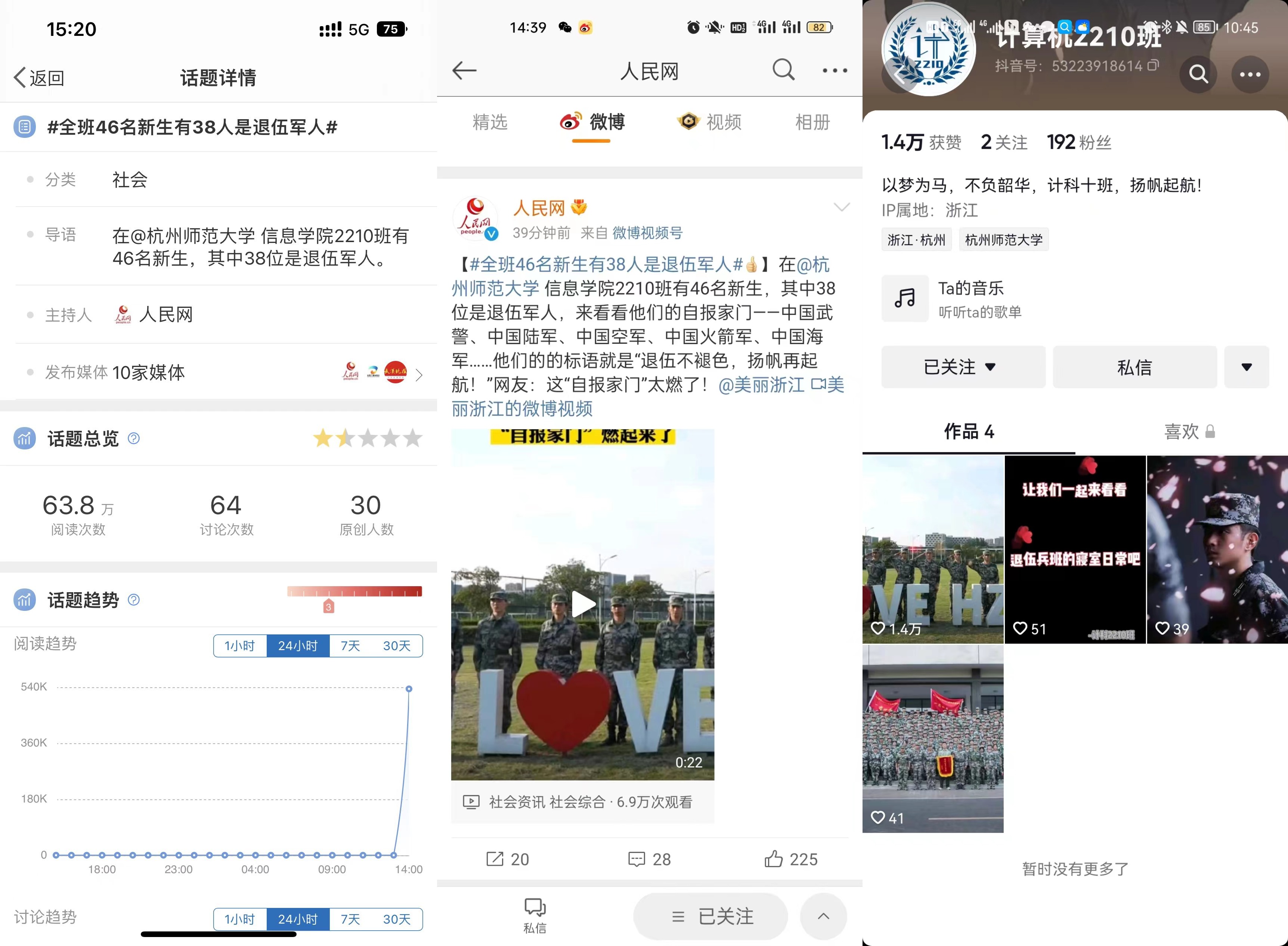 退伍不褪色,建功杭师大,计算机2210班抖音微视频获央视新闻等全国媒体广泛关注