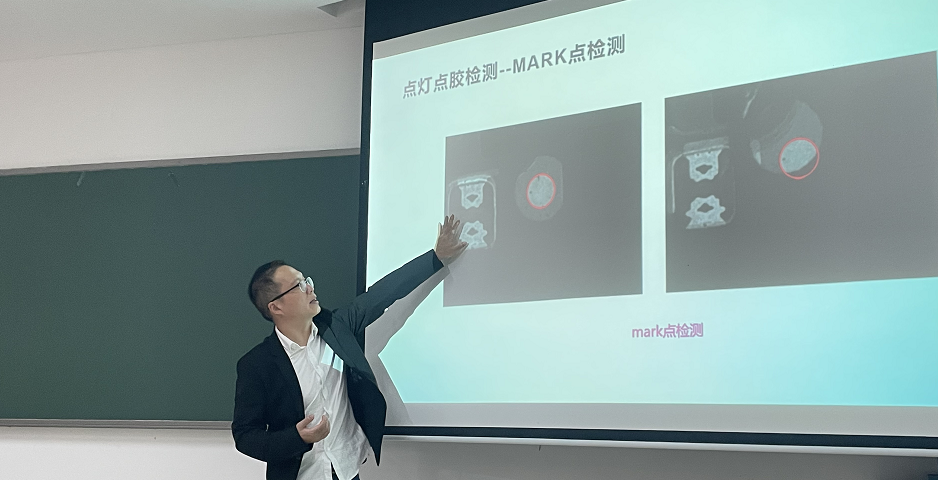 周迪斌老师先向同学们介绍了机器视觉系统的概念与原理,并展示了机器视觉系统在多个场景的应用实例,比如内壁滚针检测、认面缺口监测等技术。周老师说,机器视觉在医疗保健领域、安全领域,工业制作领域都有了广泛的应用。
