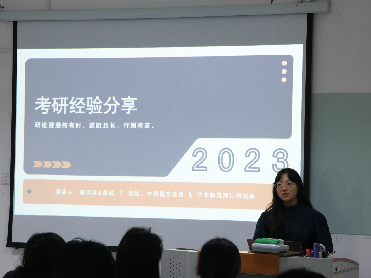 上岸中科院东北所的颜洋洋学姐和华东师范大学的张斌学长,向我们介绍了考研顶级名校的方法和备考过程。颜洋洋学姐向大二的学弟学妹们分享了现阶段可以参加的竞赛和科研项目,要及早积累成果,做好前期准备,张斌学长向大三的学弟学妹们分享了初试准备经验。学长学姐认为在备考过程中积极的心态、良好的学习环境、健康的身体、大致的规划以及研友之间的相互鼓励,都能为备考带来强劲的动力。