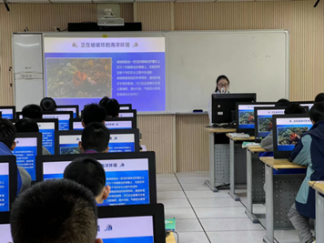 谢茜茜同学的教学的内容是PPT的制作。谢茜茜同学台风优秀,对于ppt的制作过程讲解的清晰有序,最后引导学生一步步进行任务的完成。在学生完成任务期间,谢茜茜到台下观察学生的完成情况。最后,所有学生都按时完成了任务,结束了这一场公开课。