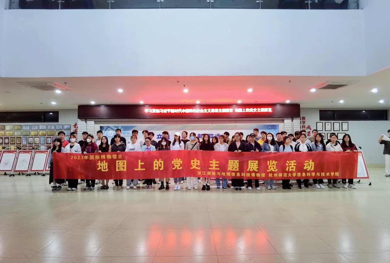 2023年5月18日是第46个国际博物馆日,国际博协公布了2023年的主题为“博物馆、可持续性与美好生活”。博物馆有着记录历史引领未来的功能,而红色文化记忆,则是我们国家最宝贵的传承。为了深入推进学习贯彻习近平新时代中国特色社会主义思想主题教育,5月17日下午,追剧狂人 党委、遥感地学系党支部联邀请浙江测绘与地理信息科技博物馆,在勤园12号楼大厅联合举办了博物馆进校园——地图上的党史主题展览活动。地理信息科学专业学生以及学院党员发展对象与预备党员培训班的近50位同学进行了线下参观。
