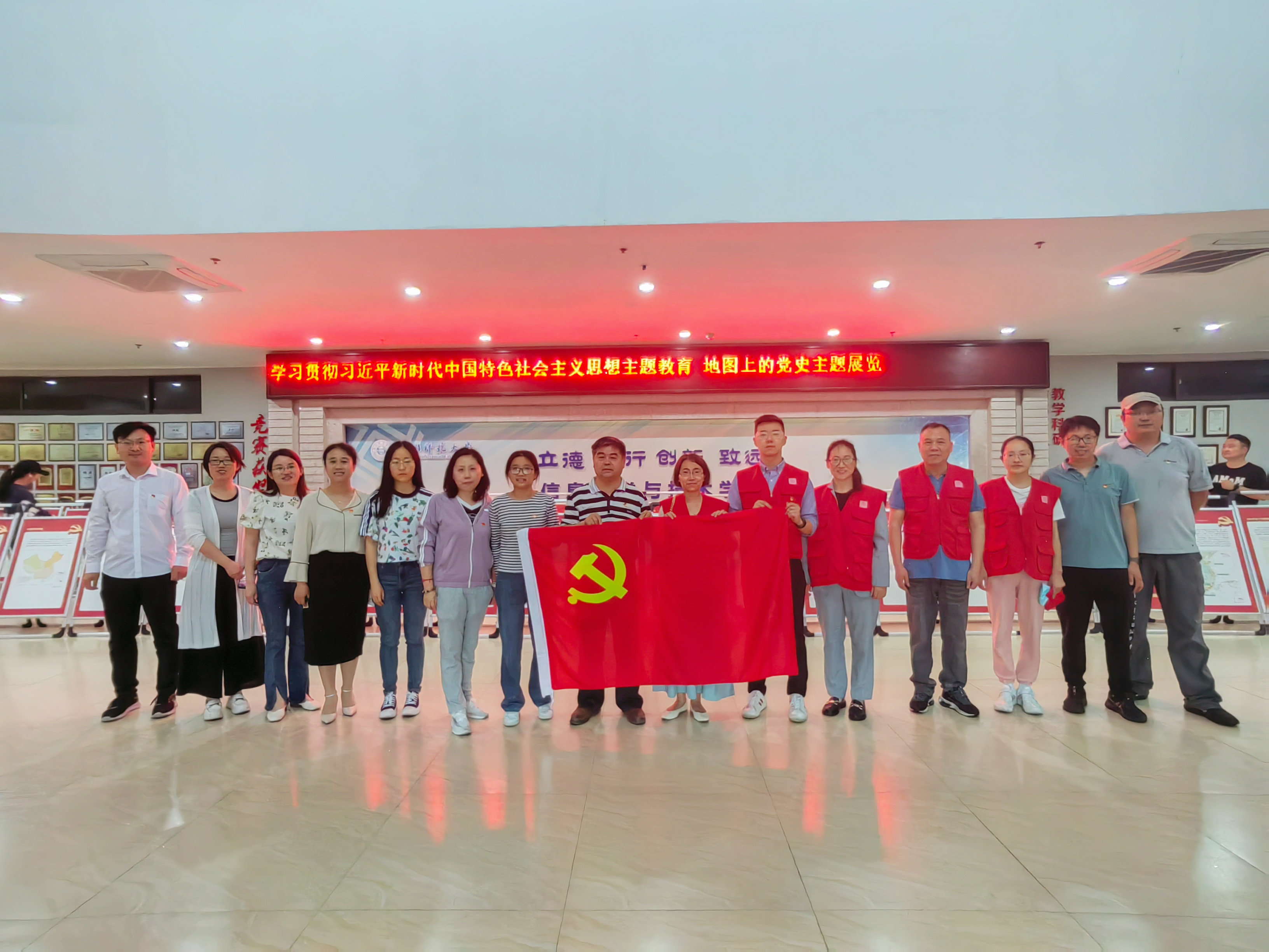 本次活动分为地图上的党史主题展览线上线下参观和有奖竞答环节。一张张传承红色记忆的线下地图展板,和线上360全景的在线场馆,让杭师大的同学老师们沉浸在百年党史的红色篇章中,地理信息科学专业的同学尤其感慨,地图与地理信息作为载体,可以如此清晰直观描绘这段百年红色记忆的事件和成就。师生们也纷纷表示,中国共产党团结带领全国各族人民,在不同时期所取得无数伟大成就,地图上的党史激励着大家爱党爱国、爱岗敬业。在竞答环节中,研学完数字展览和党史地图的师生们踊跃参与,现场洋溢着浓厚的红色文化氛围。