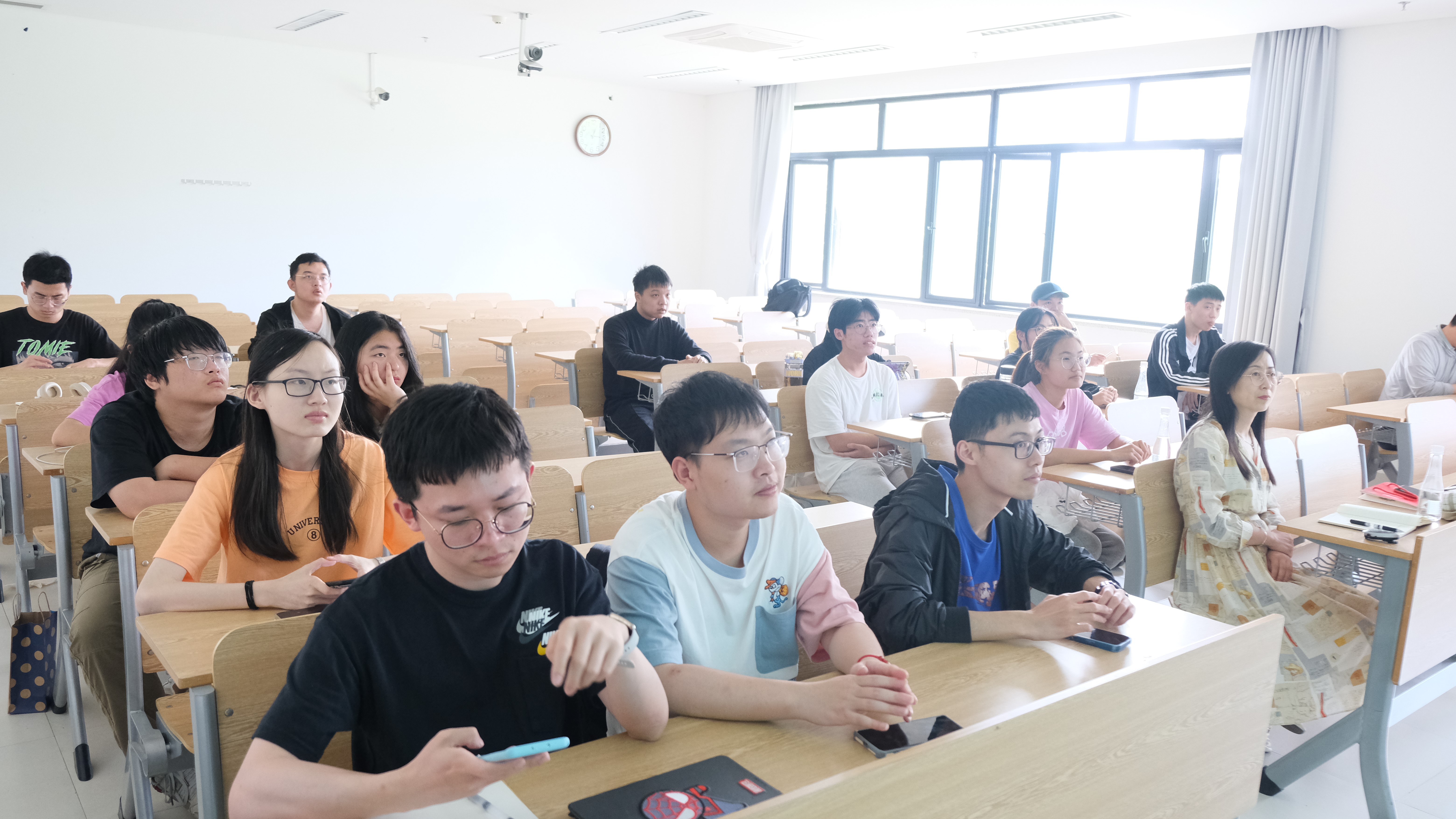 讲座末,在座学生踊跃提问,与李海明老师面对面交流,氛围轻松活跃,收获颇丰。最后,李海明老师真诚祝愿同学们在以后的岁月中开怀迎风月,潇酒度年华,做最真实的玫瑰,抬头,仰望星空;低头,数着潮张潮平,一往情深。