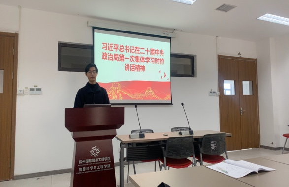 首先,王兆聪同志带领大家关注党的知识学习词典;学习习近平总书记在二十届中央政治局第一次集体学习时的讲话精神;习近平总书记在学习贯彻党的二十大精神研讨班开班式上发表重要讲话精神;省委十五届二次全会精神;浙江省、杭州市两会精神;学校解放思想大讨论动员、总结会议有关精神;学校全面从严治党会议有关精神。通过学习,同志们进一步明确了,学习宣传贯彻党的二十大精神是当前和今后一个时期全党全国的首要政治任务,每当党中央作出重大决策部署,我们就号召全党同志加强学习,以统一全党思想和行动,汇聚起攻坚克难、团结奋进的强大力量,这是党的一条成功经验。