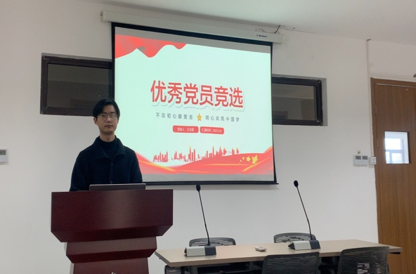 最后进行的是优秀党员答辩活动,由王兆聪和王天阳两位同志上台进行答辩。