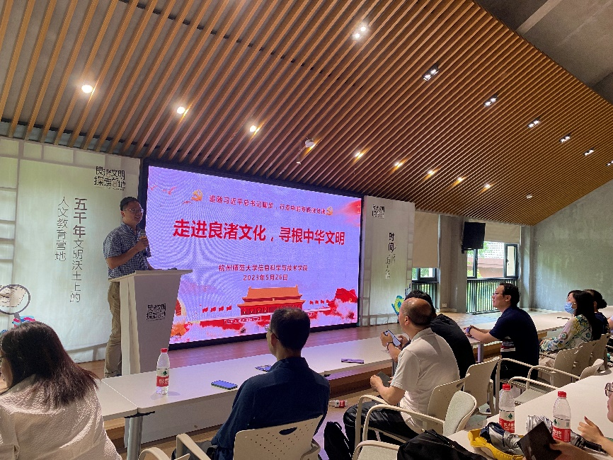 研究生党支部钱欣宜发言说,看到良渚文化是中国5000年文明史的实证,通过考察学习产生了油然而生的文化自信和民族自豪感。接着,钱老师分享了在研究生支部工作中如何通过党建引领教育,提升学生党性修养的经验,指出生活化、实际化的主题教育现场学学习方式对学生更有吸引力,也将带领研究生党员进行多形式的主题教育学习。