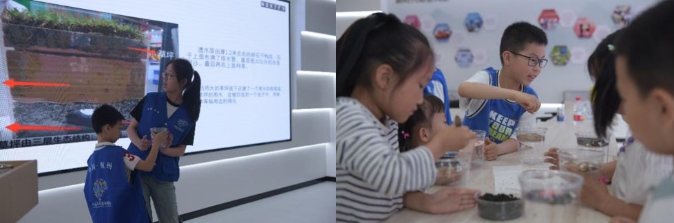“草坪养护真是精细活,没想到小小的一块草坪里有那么高的科技含量,我迫不及待地想知道更多的亚运黑科技了!”小朋友一边蹲下来观察自制的土壤渗水装置一边接着话茬说。