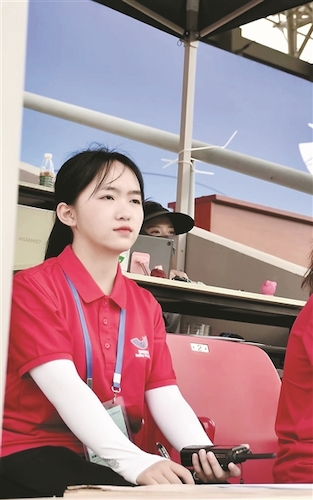在那次锦标赛中,郭馨蔓担任比赛计时记分志愿者,负责记录比赛的时间和得分情况。作为一名橄榄球“小白”,她在接到任务后迅速进入角色,在短时间内学习了解橄榄球运动的所有规则和相关信息,心里想的就是如何做好赛事的服务工作。“备用机器和主机的分数显示不同,大家一下子都傻眼了,橄榄球得分门类众多,一不留神就可能跟不上节奏。”郭馨蔓告诉记者,经历了状况百出的自主模拟后,团队成员们逐渐熟悉了操作,配合也愈加默契。幸好正赛的时候,再没有出现这种情况,并顺利完成了工作。说起学生的表现,志愿者领队教师杨鹏飞也是赞赏有加:“现在回想起来,那段时间小郭的进步也很大,虽然赛事压力很大,但她从不叫苦叫累。赛事结束后,领域的主管老师也给他们信息技术领域的志愿者送上了大大的赞。”
