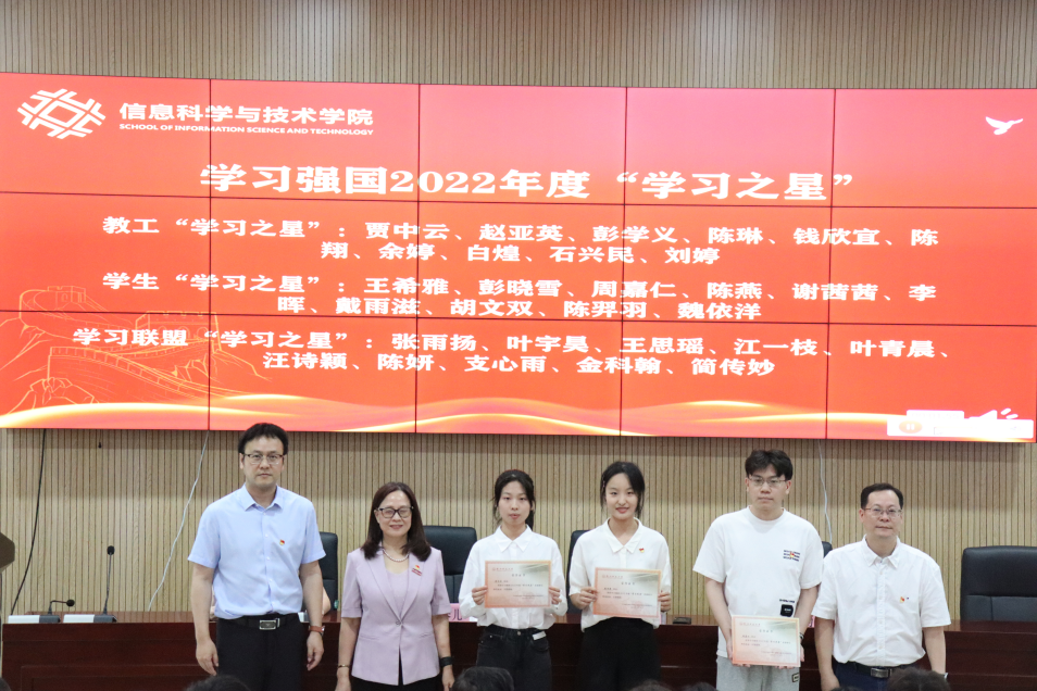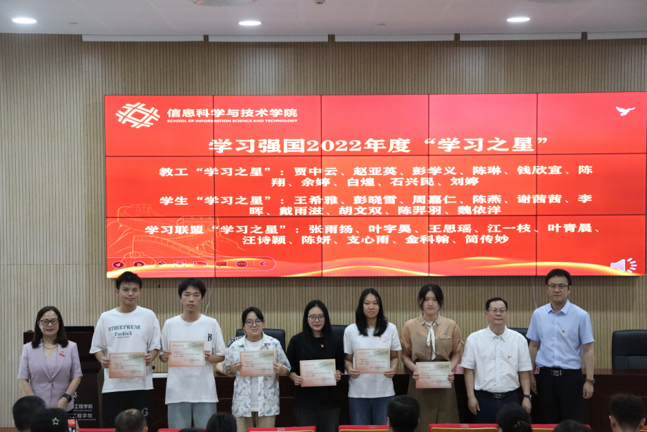 随后,党委委员姚争为副院长宣读了学院党委关于表彰2022年度“学习强国”学习平台先进个人的决定。教工“学习强国”、学生“学习强国”和学习联盟的先进个人代表依次上台领奖。