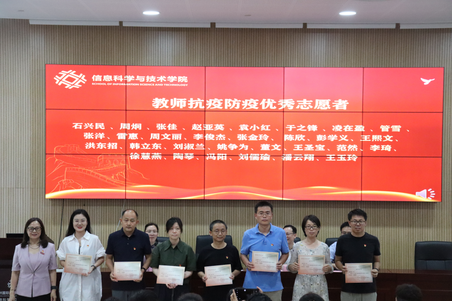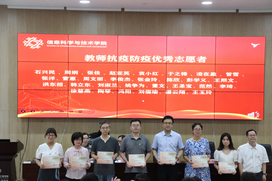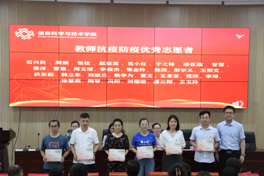 党委副书记余洁宣读了学院党委关于表彰2022年度教师抗疫防疫优秀志愿者的决定。受表彰人员代表也上台领奖,与大家合影留念,以表彰他们在抗疫防疫工作中的杰出贡献。