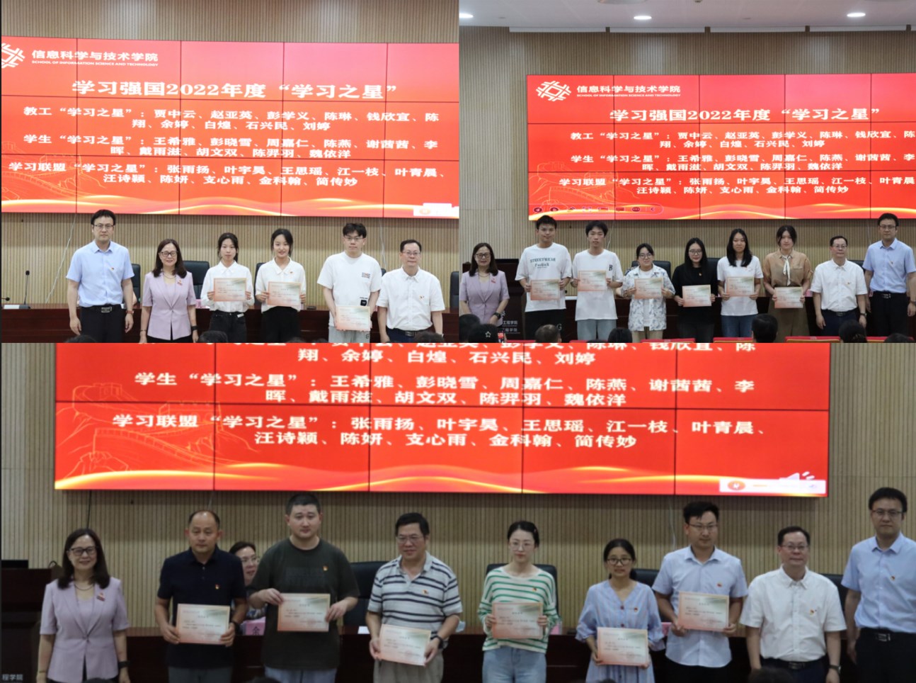 随后,党委委员姚争为副院长宣读了学院党委关于表彰2022年度“学习强国”学习平台先进个人的决定。教工“学习强国”、学生“学习强国”和学习联盟的先进个人代表依次上台领奖。