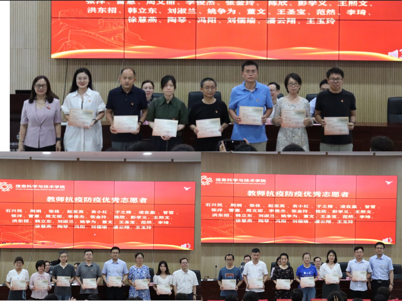 党委副书记余洁宣读了学院党委关于表彰2022年度教师抗疫防疫优秀志愿者的决定。受表彰人员代表也上台领奖,与大家合影留念,以表彰他们在抗疫防疫工作中的杰出贡献。