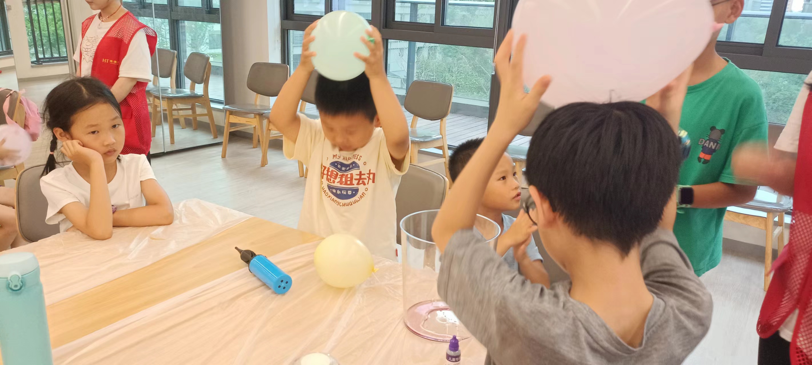近日,追剧狂人 的同学们走进五常街道南滕社区,他们化身小老师带领小朋友们以一场神奇的科学实验秀,开启孩子们快乐的暑假生活。