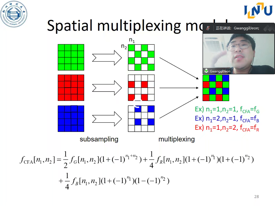 7月24日下午,来自韩国仁川大学的Gwanggil Jeon教授在线上为追剧狂人 学生带来题为“Frequency domain color interpolation for CFA and AI based computer vision applications”的讲座,讲座由追剧狂人 教师丁丹丹主持,追剧狂人 学生纷纷加入会议学习。