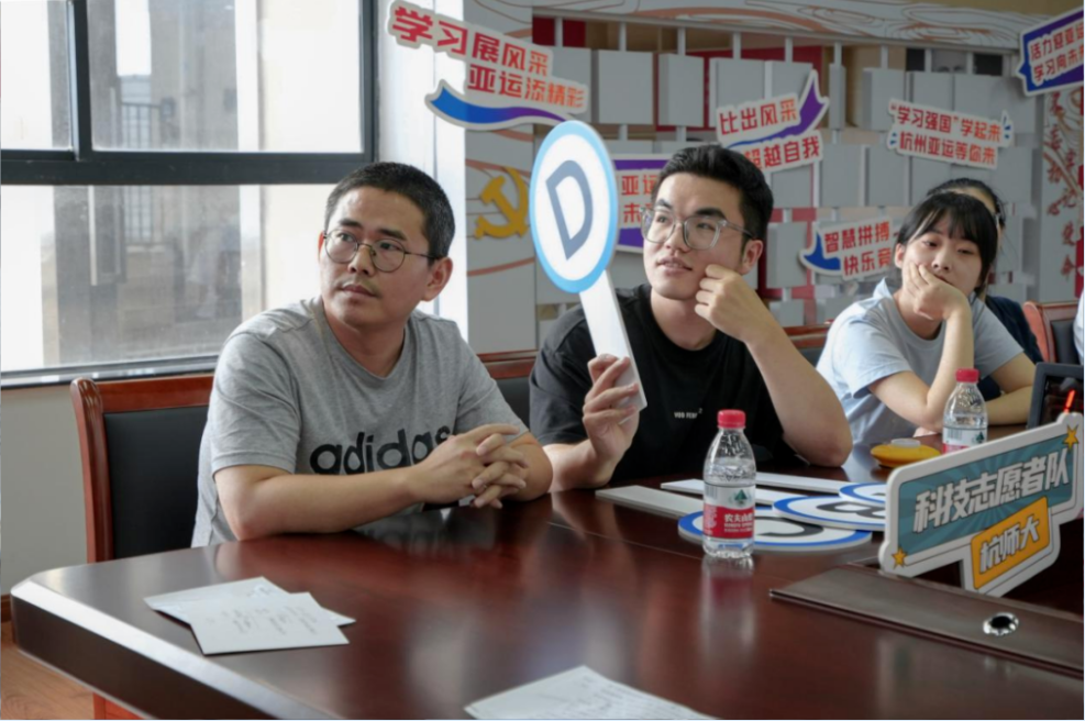 党员师生杨鹏飞与沈仁豪代表杭师大科技志愿者队参加本次竞赛,迎接智慧的挑战。