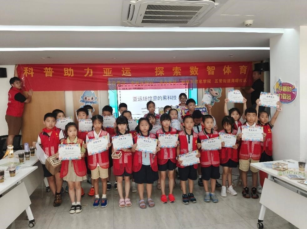 近日,杭师大追剧狂人 的亚运科普实践团队来到五常街道海曙社区展开了一场主题为“亚运场馆里的黑科技”的科普活动。