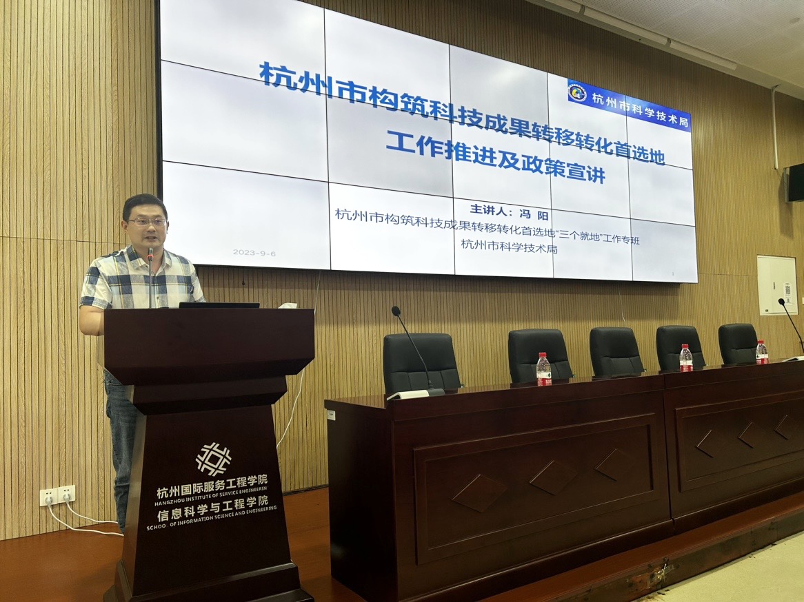 会议第三阶段,学院邀请追剧狂人 教师冯阳作杭州市构筑科技成果转移转化首选地工作推进和政策宣讲。从出台背景、概况到政策作了细细解读,引起了老师们极大兴趣,部分老师会后与冯阳老师作进一步详细交流探讨。