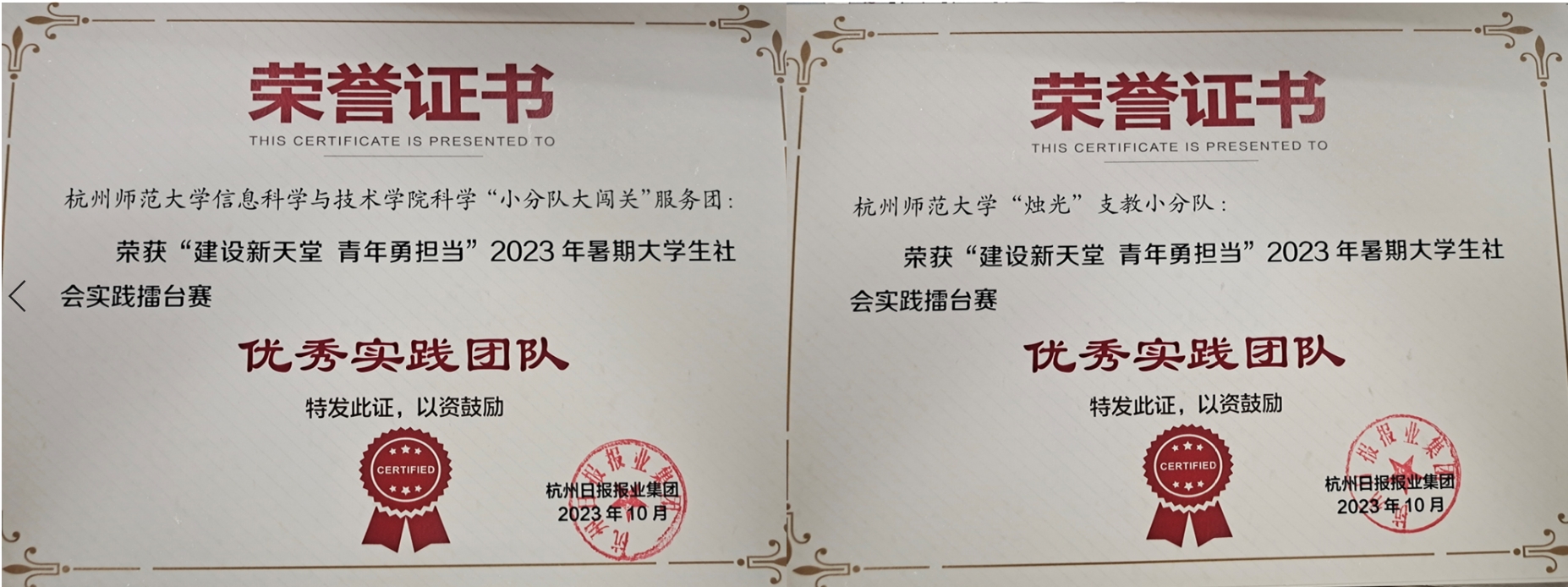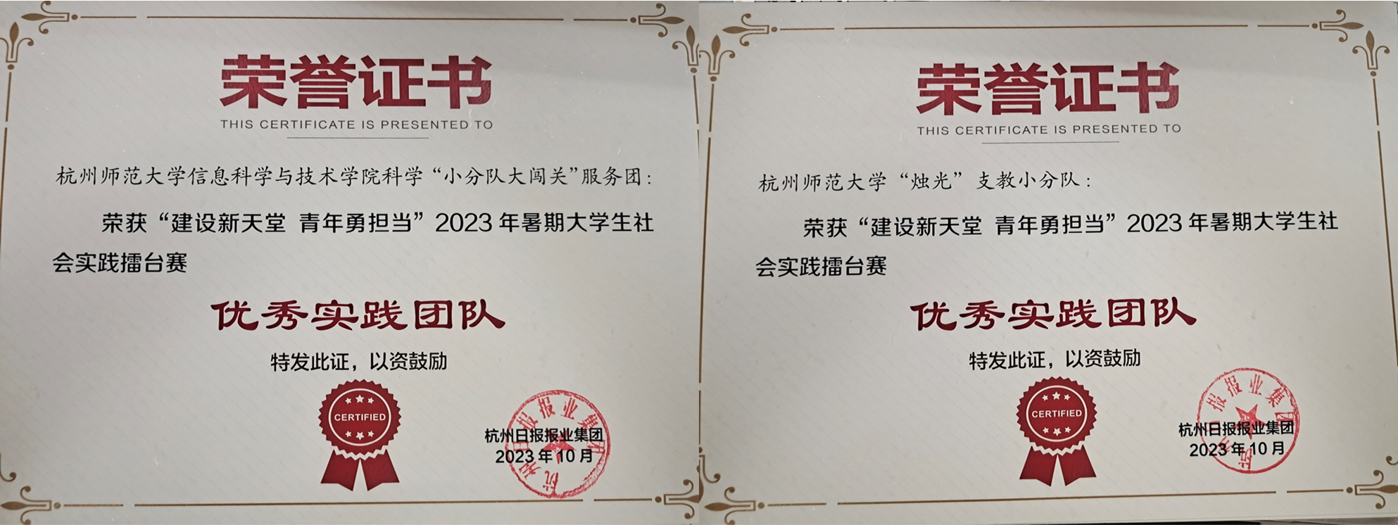 两个团队荣获“优秀实践团队”荣誉称号,杨鹏飞和方美红老师荣获“优秀指导教师”荣誉称号。