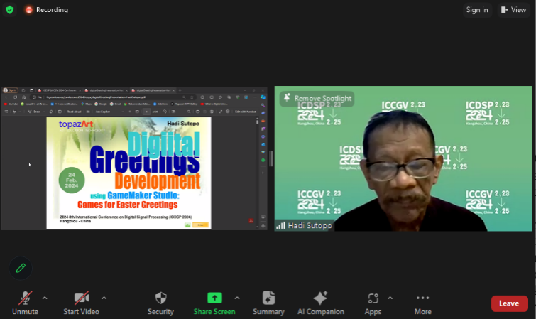来自印度尼西亚 Topaz art 教育发展公司的Hadi Sutopo博士发表“Digital Greetings Development using GameMaker Studio: Games for Easter Greetings”演讲。