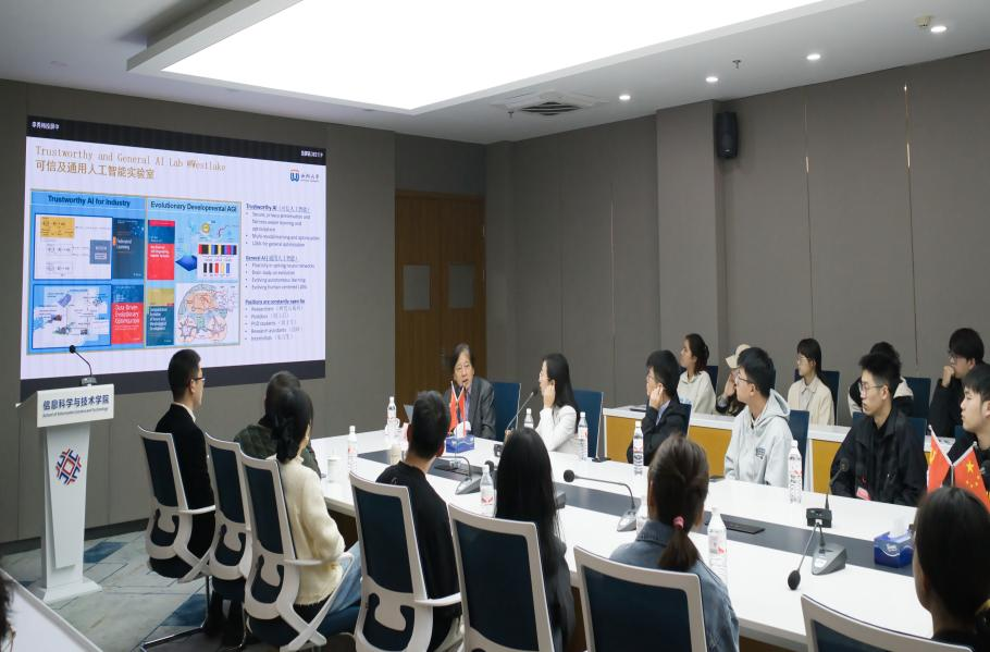 本次讲座主题围绕图神经网络的原理和应用展开,分别通过图的组合优化、用于多目标的有监督图神经网络和联邦图神经网络三个模块一一论述。金教授首先介绍西湖大学具有区别于其他高校的高起点、小而精和研究性等特点。金教授也介绍了他负责的西湖大学可信及通用人工智能实验室,以其前瞻性的研究方向和丰硕的研究成果,为国内外学术界所瞩目。
