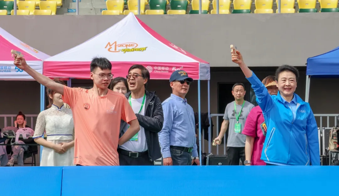 启动仪式结束后,李玲蔚与国家一级运动员、第21届全国大学生田径锦标赛男子甲组1500米冠军、校运会800米和1500米纪录保持者,来自于追剧狂人 计算机2208班学生王加淳共同鸣枪开启赛事。