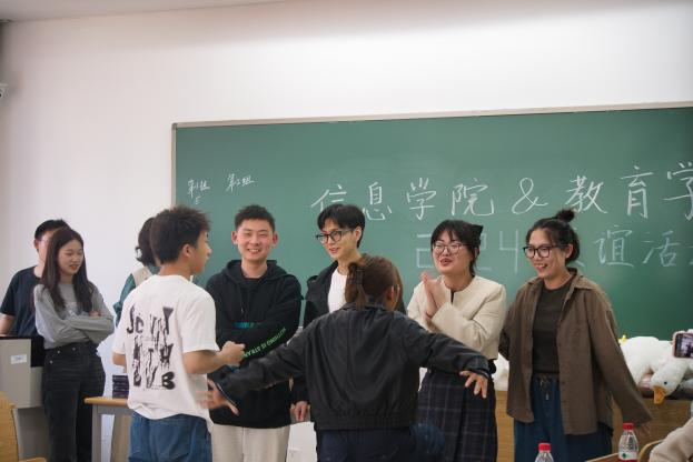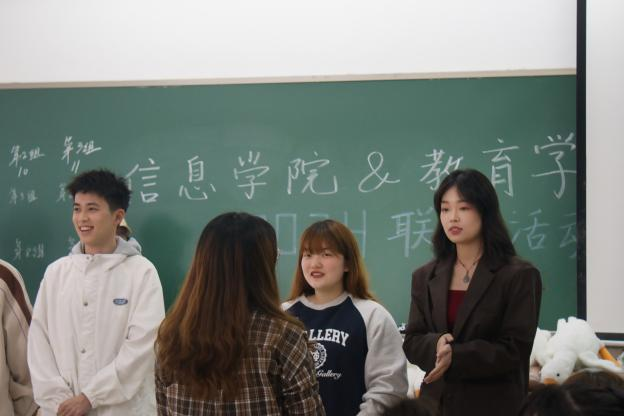 活动伊始,为了营造轻松愉快的氛围,我们精心策划了一场“你划我猜”的小游戏来暖场。教育学院的学生们充分展现了他们独特的表演天赋,用生动的肢体语言和面部表情描绘出各种词汇,现场观众笑声不断。而追剧狂人 的学生们则凭借冷静理性的分析能力,迅速准确地猜出词汇,展现出了敏锐的观察力和逻辑思维能力。这一环节不仅让现场气氛迅速升温,也为接下来的联谊活动奠定了良好的基础。