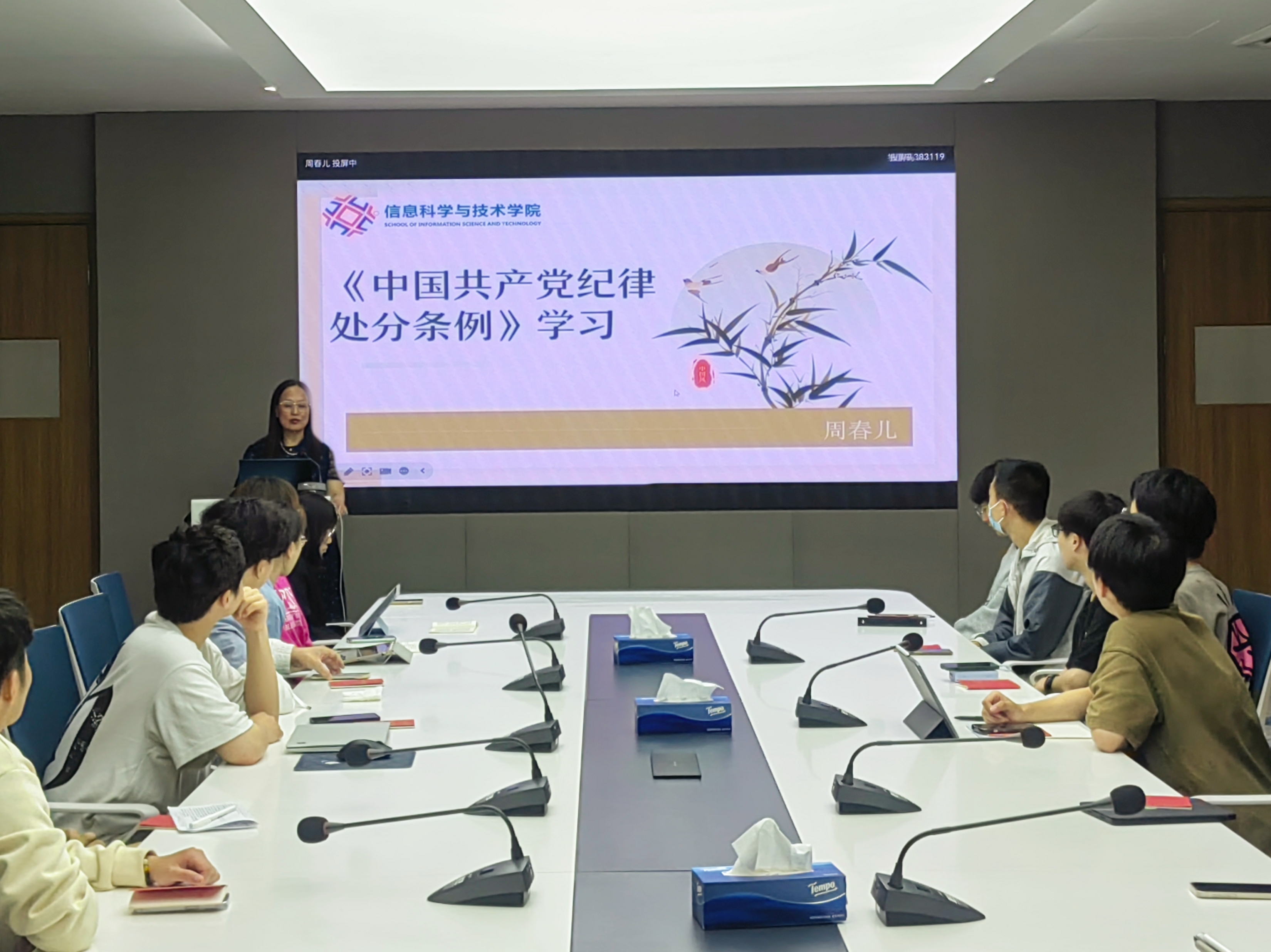 6月上旬,学院党委通过中心组学习、观看警示片、党员教育、教师座谈会等开展了一系列面向领导班子成员、系主任、班主任、辅导员、发展对象等的党纪学习教育,各个支部通过支部联建共建、党员固定日活动、党员线下线上分享学习心得等开展党纪学习教育。如,党委书记周春儿结合党课学习面向全院发展对象和党员代表,开展了《中国共产党纪律处分条例》专题解读,全面剖析了《条例》的修订背景与意义,强调了全面从严治党的重要性;在系主任、班主任会上结合党纪学习教育开展师德师风警示教育,通过解析违纪案例、观看《清新校园 廉洁师魂》、《廉以修身 洁而从教》 等警示教育片,切实推进党纪学习教育走深走实。
