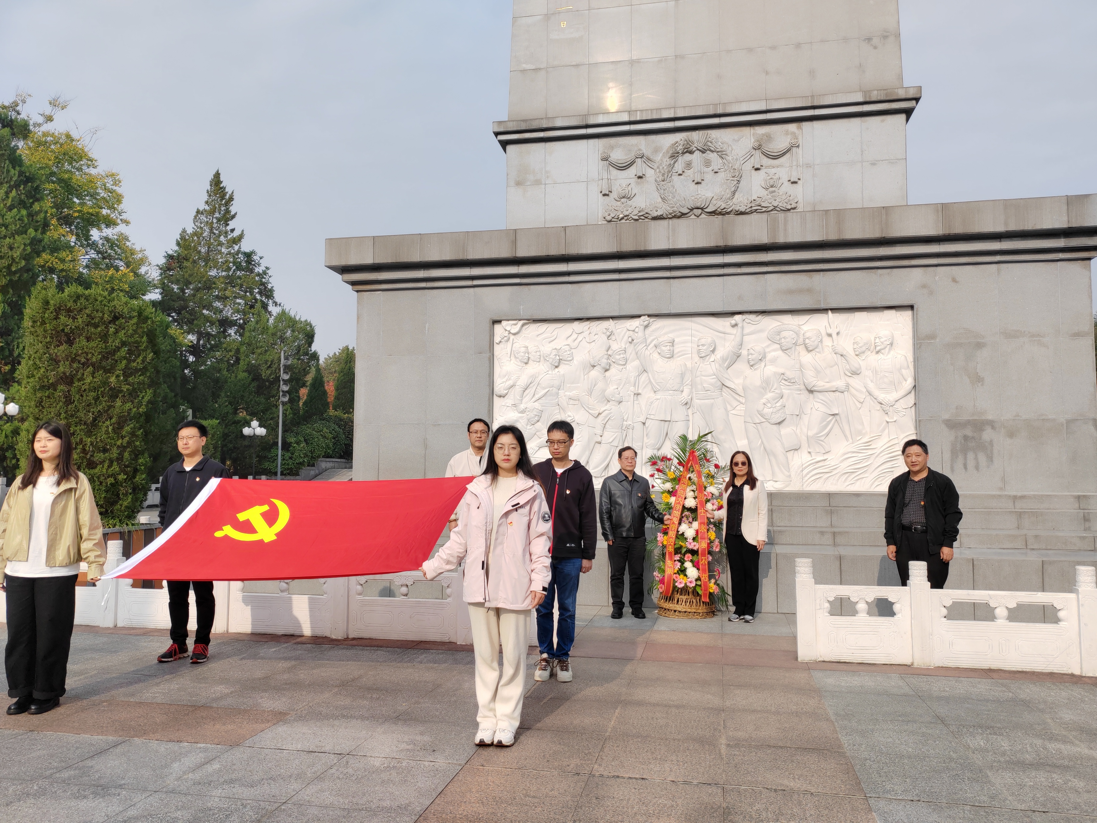 随后,向革命烈士敬献花篮,花篮中的鲜花娇艳欲滴,象征着革命先烈们的崇高精神永远绽放。全体人员怀着无比崇敬的心情向烈士默哀,深切缅怀那些为民族独立、人民解放事业英勇献身的革命先辈。这一刻,广场上一片肃穆,每个人的心中都充满了对先烈的敬仰之情。