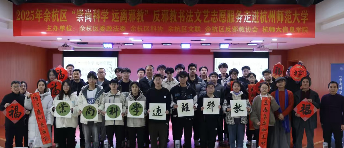 远离邪教千家乐,崇尚科学万家兴”“扫除邪教乾坤朗、崇尚科学天地清”……近日,余杭区“崇尚科学 远离邪教”书法文艺志愿服务走进杭师大。