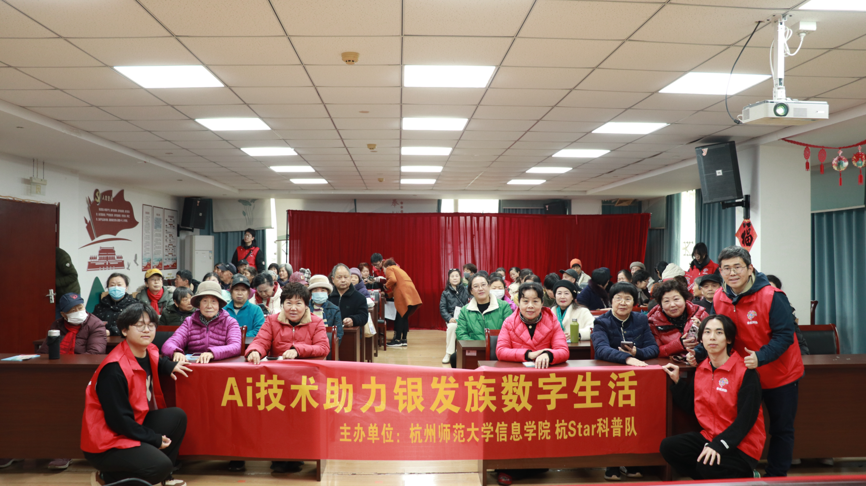 2025年3月5日是全国第62个“学雷锋纪念日”,在这个特殊的日子里,学院“皓首行”志愿者团队再次走进余杭区山水社区党群服务中心,由学院学工办主任杨鹏飞老师带队,为社区的老人们带来了一场别开生面的AI软件教学课。这次,他们化身耐心细致的“信息小老师”,帮助银发族跨越“数字鸿沟”,用AI技术赋能老年人的智慧生活,用实际行动诠释着雷锋精神的时代内涵。