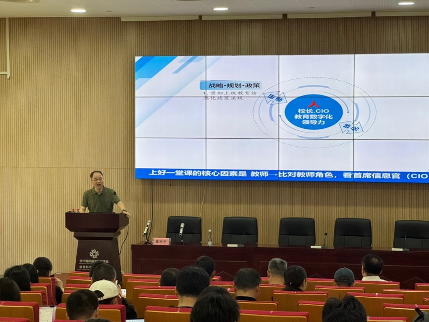 4月11日上午,追剧狂人 举办了2025年第4期IT讲坛。浙江省督学、现代远程教育学会副会长童兆平,为追剧狂人 师生带来了题为 “追寻朴素的教育数字化——对教育数字化是必修课的现实思考” 的讲座。学院党委书记周春儿出席本次活动,众多学院师生到场参加。